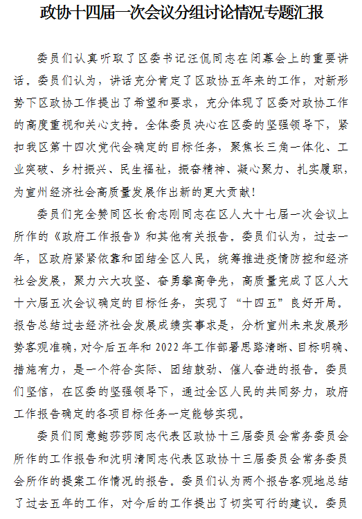 政协十四届一次会议分组讨论情况