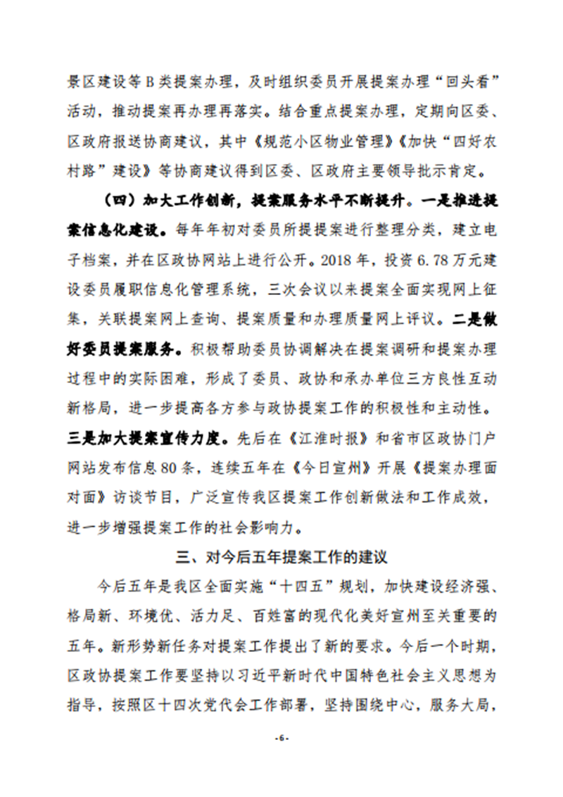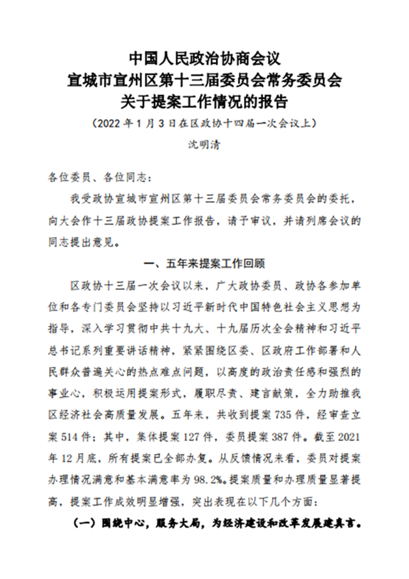 政协宣城市宣州区第十三届委员会常务委员会关于提案工作情况的报告