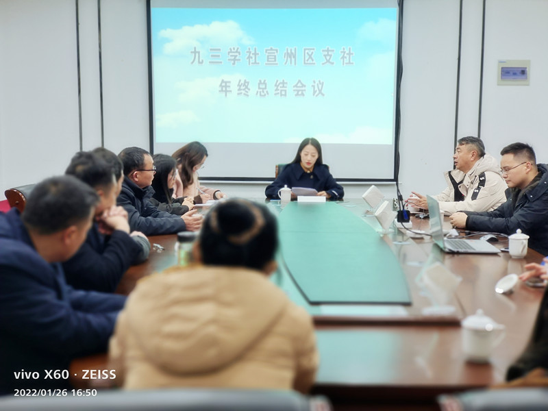 1月26日,九三学社宣州区支社召开年终总结工作会议。会议传达了九三学社安徽省十一届六次会议、区人大十七届一次会议、区政协十四届一次会议等重要会议精神,学习了习近平总书记在全国政协新年茶话会上的重要讲话精神,并要求广大社员将以上会议和文件精神贯彻落实到本职工作和社务工作中。