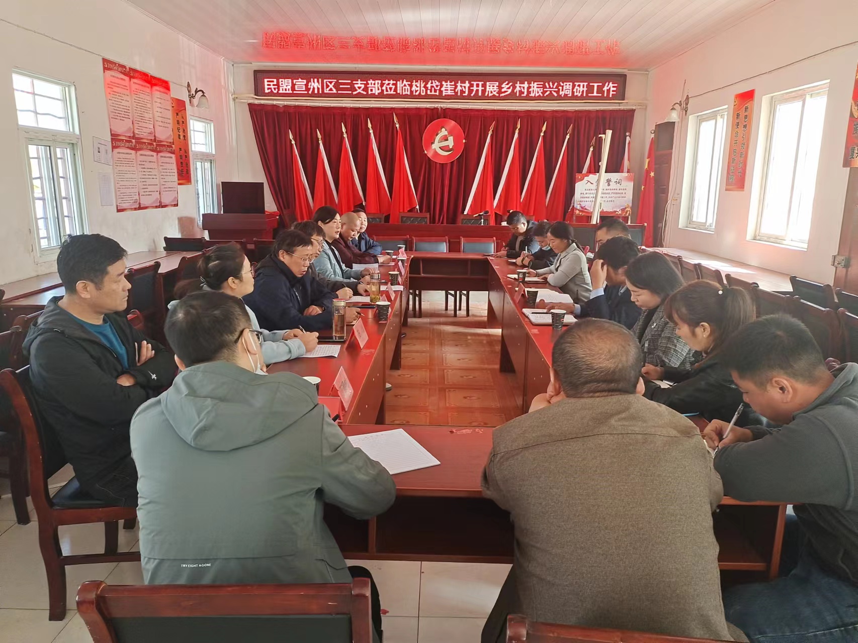 日前,民盟宣州区总支主委刘强率民盟宣州区总支三支部盟员深入古泉镇桃岱崔村开展乡村振兴调研。古泉镇党委书记申长意出席调研座谈会,桃岱崔村两委班子全体成员参加座谈。