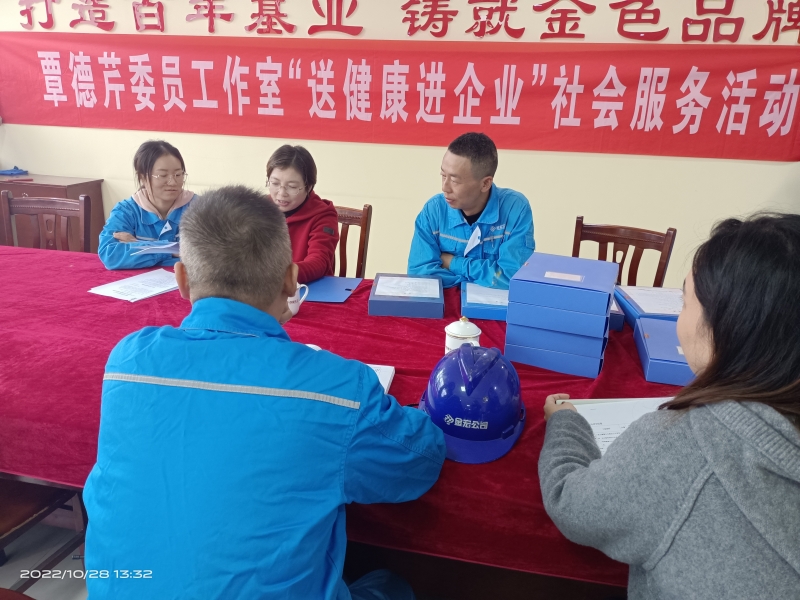 10月28日下午,市政协委员、九三学社社员覃德芹赴高新区安徽宣城金宏化工有限公司开展“送健康进企业”社会服务活动,她结合《安徽省健康企业建设实施方案》评估标准,指导金宏化工进一步健全职工健康管理和健康企业建设档案,拓展健康环境和健康服务内涵。覃德芹社员集专业技术之优势,解企业之所需,开展“送健康进企业”活动,为劳动者的健康安全保驾护航,体现了九三学社强烈的社会责任感、优秀的职业素养和良好的精神风貌。她表示将来还会继续开展一系列企业义诊咨询等服务,让更多企业职工不出厂门,就可享受到贴心的卫生健康服务。