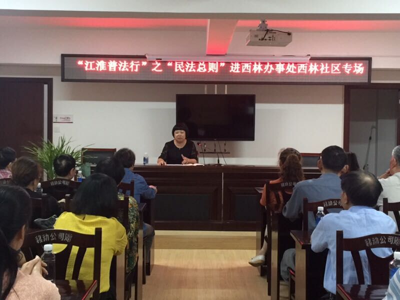 5月26日下午,区政协委员、致公党党员、安徽师阳安顺律师事务所刘文婕律师,根据中共宣城市委宣传部、宣城市司法局、宣城市法治宣传教育工作领导小组办公室宣办字(2017)15号文件安排,到宣州区西林街道办事处西林社区为该社区的居民开展了“江淮普法行”之《民法总则》进社区巡讲活动。在此次讲座中,刘文婕律师用通俗易通的语言,生动的案例,诠释了民法总则的精髓,贴近老百姓的生活。此次讲座为刘文婕律师的首场讲座,之后她还会将民法总则带入济川的东桥和玉山社区以及开发区管委会。