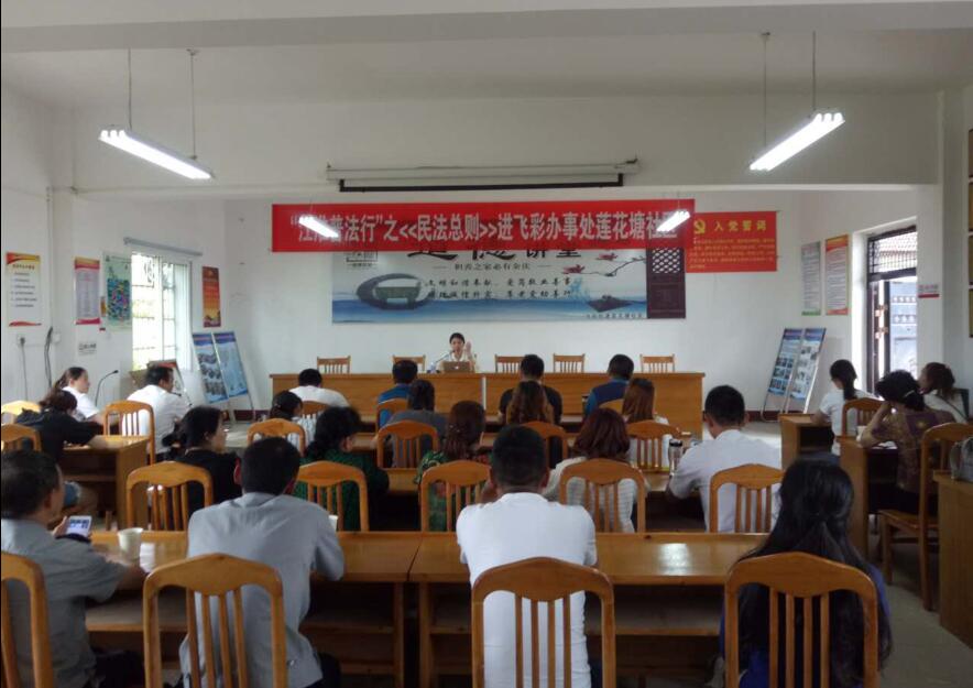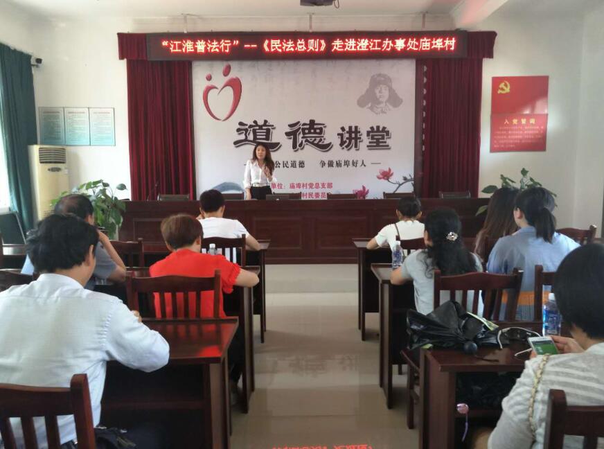 5月27日下午、6月16日下午,区政协委员、安徽敬亭山律师事务所陈九美律师,应邀来到到宣州区澄江办事处庙埠村民委员会、宣州区飞彩办事处莲花塘社区为两个社区的居民开展了“江淮普法行”之《民法总则》进社区巡讲活动 。