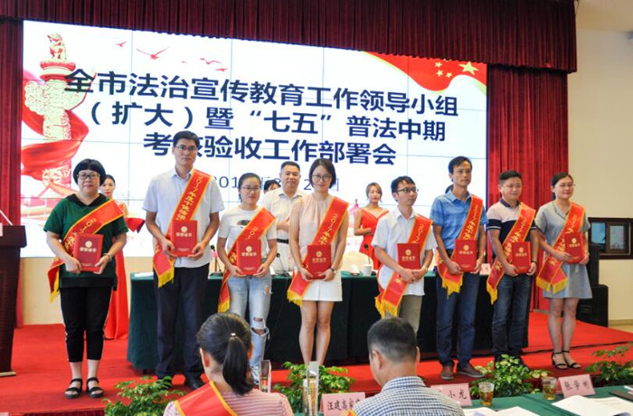 8月24日下午,宣城市组织召开全市法治宣传教育工作领导小组(扩大)暨“七五”普法中期考核验收工作部署会,各县市区委、政府分管负责同志,市法治宣传工作领导小组成员单位分管负责同志及普法联络员,部分“七五”普法迎检重点责任单位分管负责同志,各县市区法宣办主任、副主任,年度法治家庭、十佳法治讲师、优秀普法志愿者代表190余人参加了会议。市政协副主席杨林秀宣读了表彰文件,市“四大班子”领导为获奖代表们颁发了奖杯(证书)。