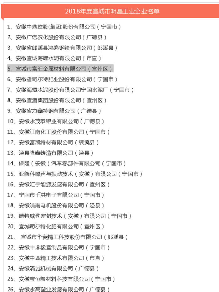 为贯彻落实市委四届六次、七次全会精神,加快工业强市建设,推进全市经济高质量发展,2月11日上午,市委、市政府在红星礼堂召开全市工业强市暨招商引资推进大会,全市上下共同奏响工业强市最强音,吹响招商引资集结号。会上表彰了功勋企业家、部分2018年度明星工业企业、招商引资先进个人和2017年度市长质量奖,区政协常委裘明国所在企业富旺金属材料有限公司荣获2018年度明星工业企业称号。