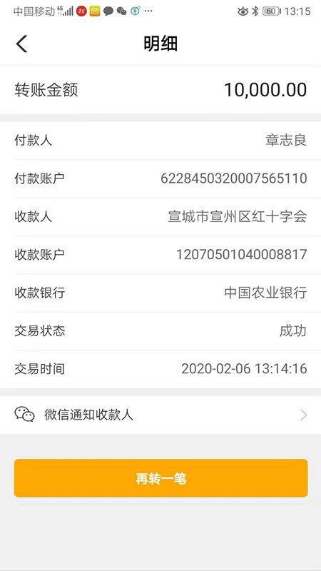 章志良委员:通过区政协向宣州区红十字会捐款一万元用于防疫救灾