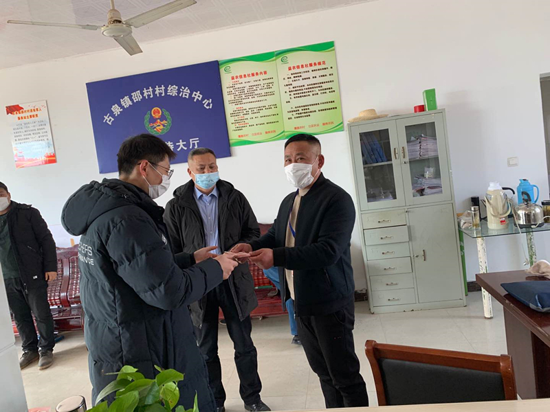 2月10日,区政协委员汪晓斌到古泉镇卲村村进行防疫慰问,并送去了2000元慰问金。