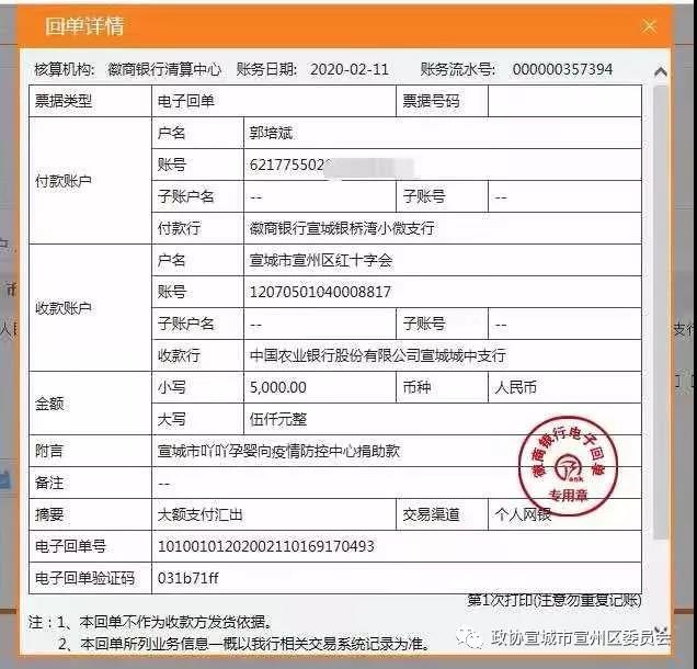 区政协委员、宣城市吖吖孕婴有限公司总经理郭培斌向宣州区红十字会捐款五千元用于防疫救灾。