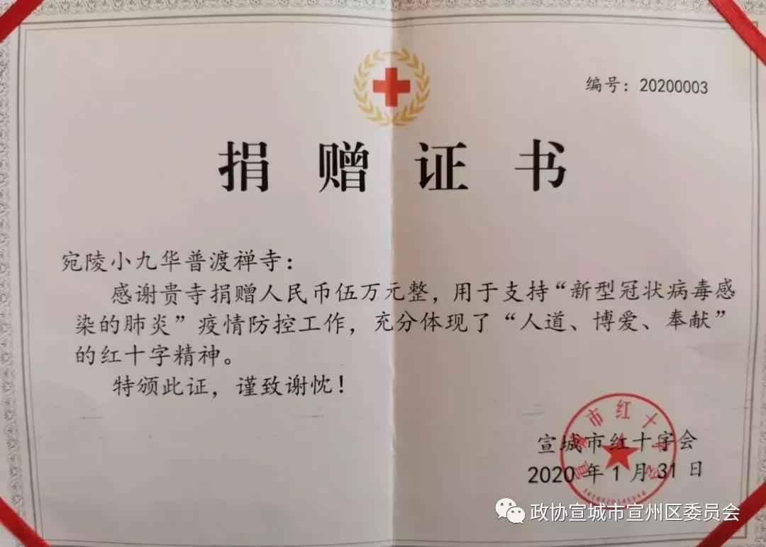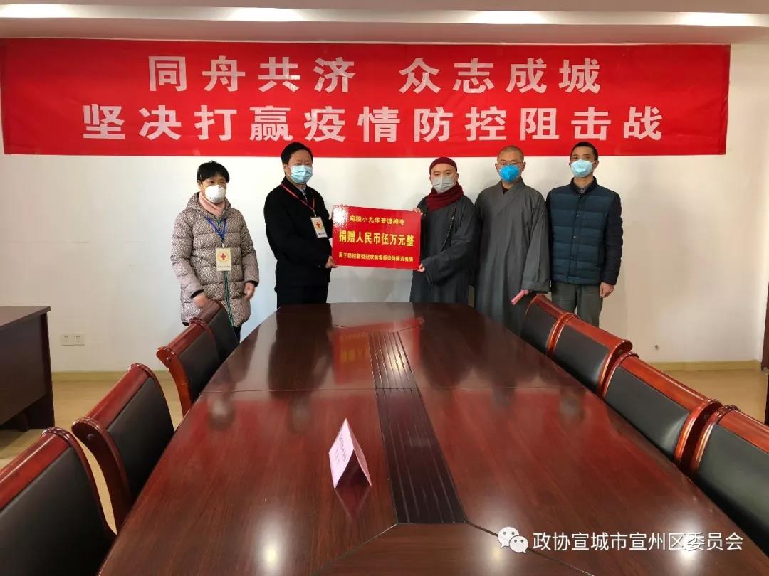 日前,湖北省武汉市及其它地区陆续发生“新型冠状病毒”疫情。宗教界人士也在积极开展疫情救助捐款活动,区政协委员、宛陵小九华住持辉振法师切实履行社会责任,积极开展抗击疫情捐款活动,共募集资金七万二千余元向宣城市红十字会等单位进行捐赠,支援我市开展新型冠状病毒肺炎疫情防控工作。