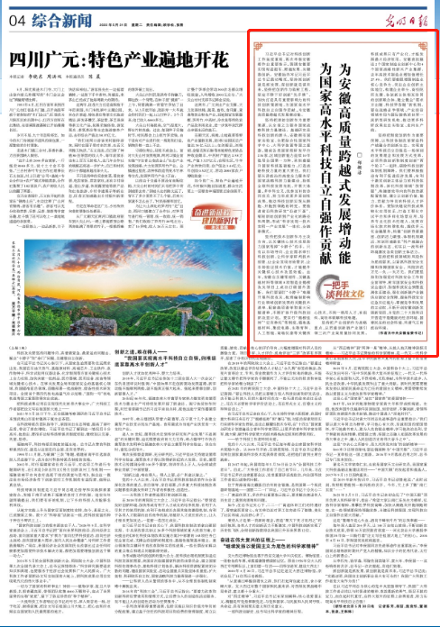 习近平总书记对科技创新工作高度重视,两次考察安徽都作出重要指示,强调安徽要实现弯道超车、跨越发展,关键靠创新。安徽始终牢记习近平总书记殷切嘱托,坚持抓创新就是抓发展、谋创新就是谋未来,坚持把创新作为栽树工程,坚定不移下好创新“先手棋”,加快打造具有重要影响力的科技创新策源地,为国家高水平科技自立自强作贡献,为安徽高质量跨越式发展增动能。