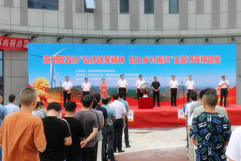 9月28日下午,宣州区政协“弘扬铁军精神 助力乡村振兴”主题书画展在宣州经开区管委会举办。市政协主席吴爱国,市政协原副主席、市政协书画院院长宦朝东,区人大常委会主任孙国梁,区政协主席时国金,区委常委、宣传部长杜霖,副区长曹洪,区政协副主席吴寒飞出席开幕式。时国金致开幕辞。区政协书画院院长沈明清主持开幕式。