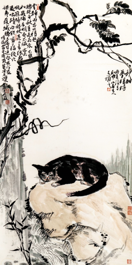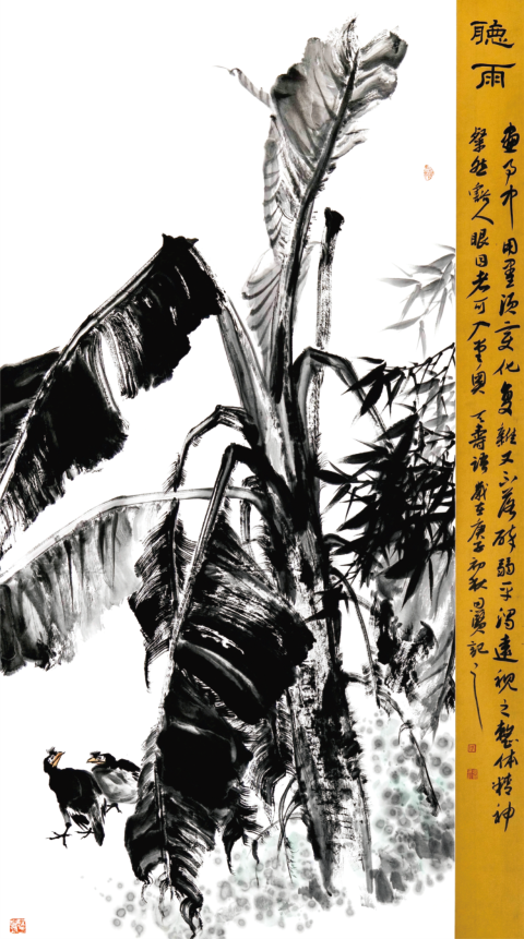周恩贤 《听雨》国画