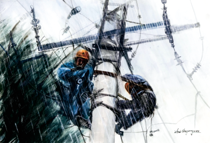 翟曙光 《万家灯火》水彩画