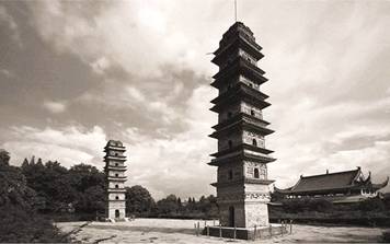 广教寺原址在敬亭山昭亭湖畔,那里曾是一片壮观的古建筑群,到民国年间还能见到它恢弘的格局。后来历经战火劫难,寺院的殿宇楼台均已不存,佛器瑰宝尽皆毁散;千年遗址上,只比肩伫立着这一对古塔。