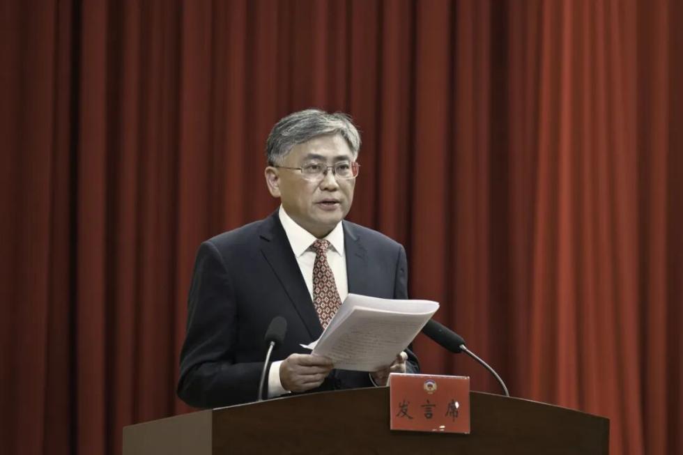 区政协主席时国金代表政协第十四届宣城市宣州区委员会常务委员会向大会作工作报告。