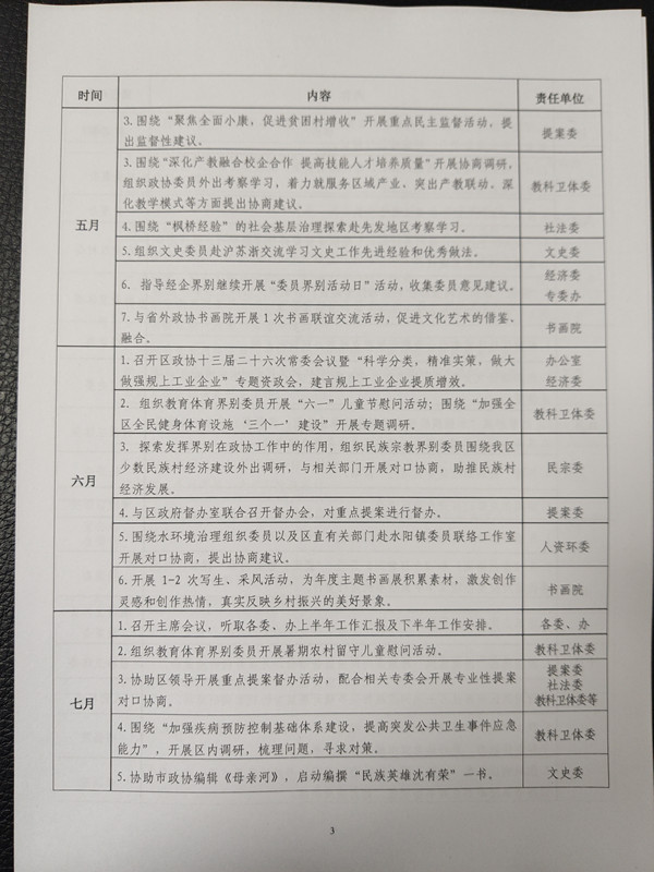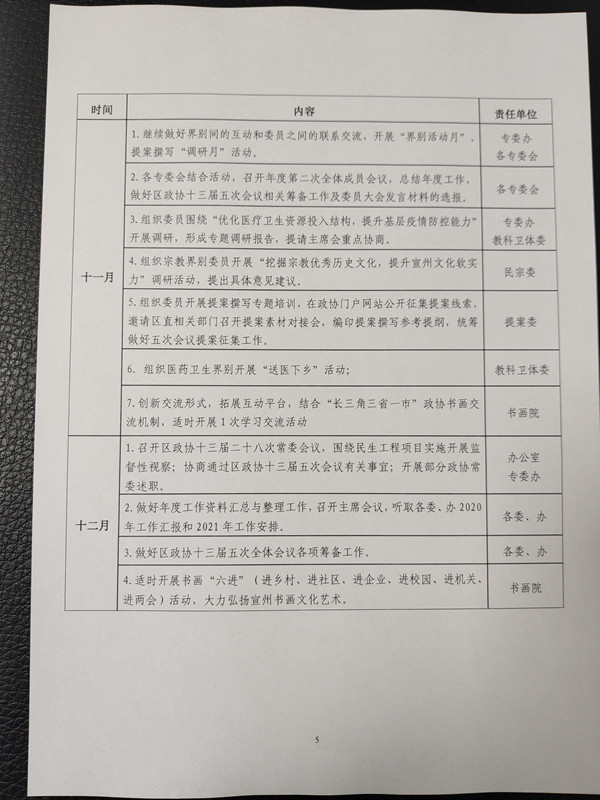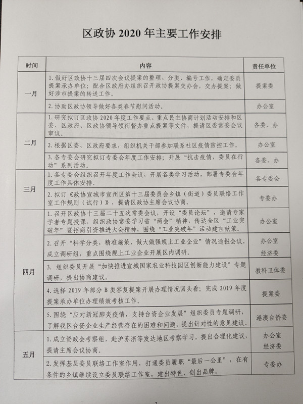 关于印发《区政协2020年主要工作安排》的通知