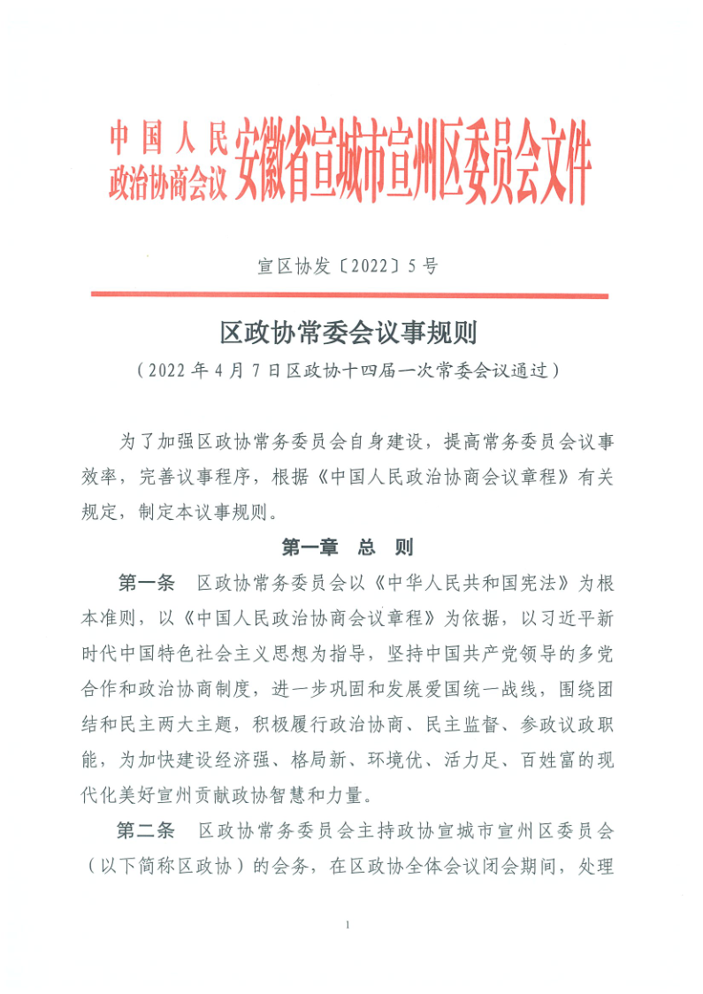 区政协常委会议事规则