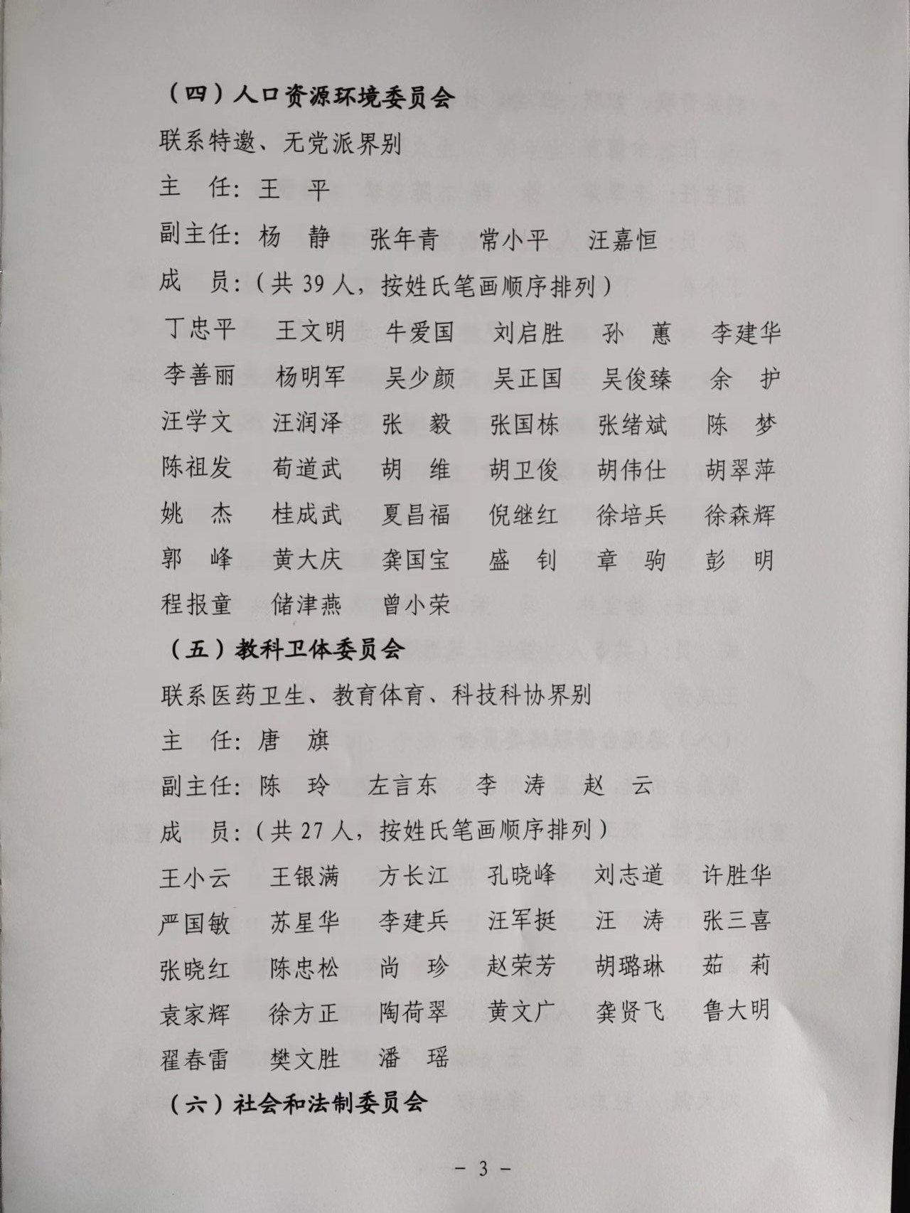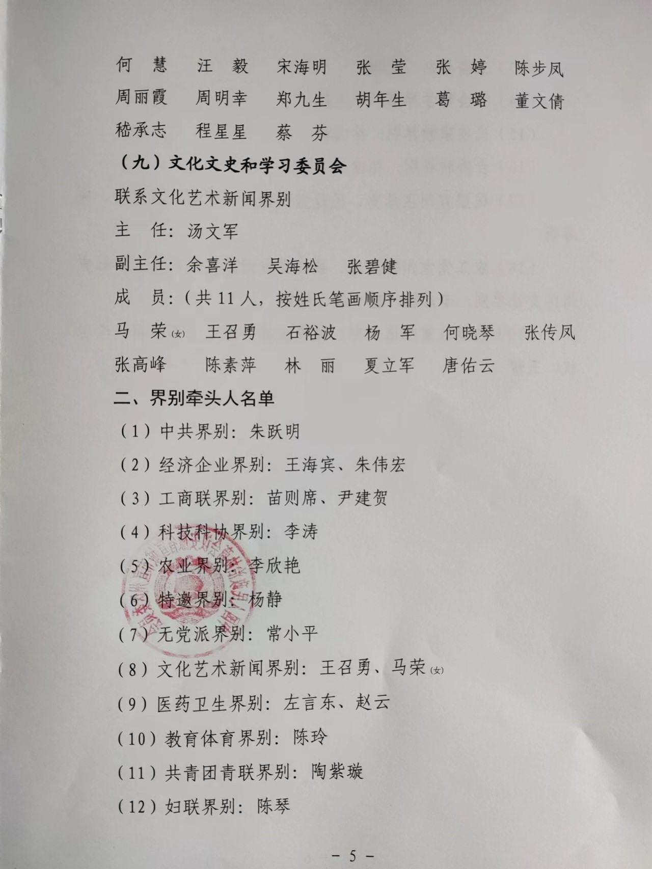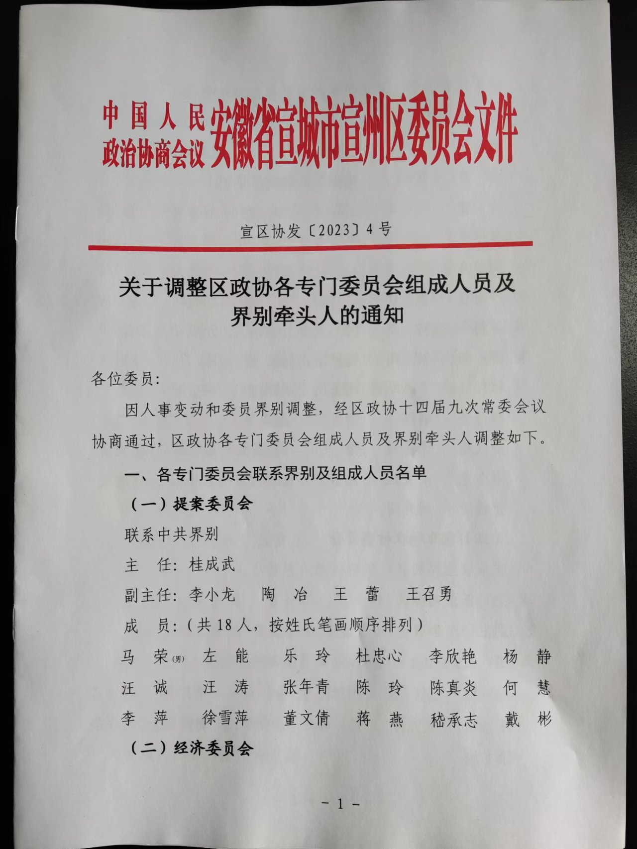 关于调整区政协各专门委员会组成人员及界别牵头人的通知
